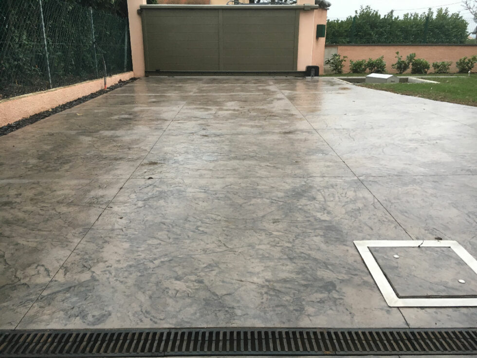 Le béton imprimé est très résistant dans le temps et s’use très peu, nous lui ajoutons des joins de dilatation afin qu’il résiste à toutes les températures.